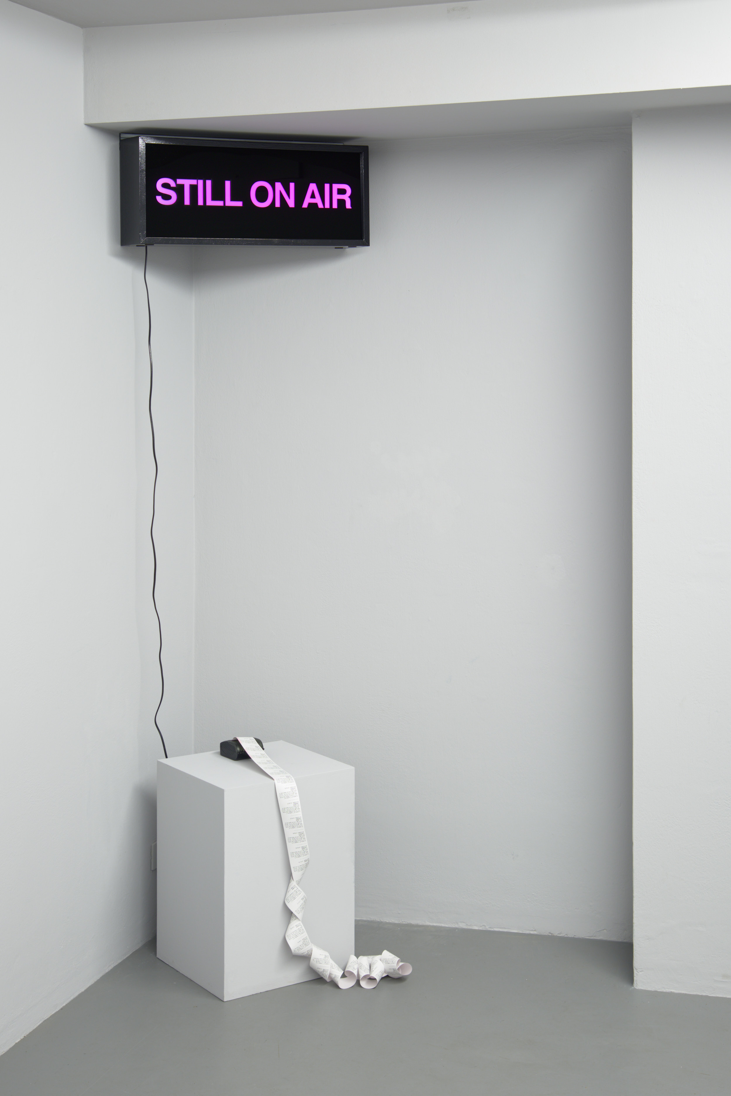 The exhibition includes works from the post-hype NFT trilogy, including EvidenceOfLiveness.sol and Still on Air.